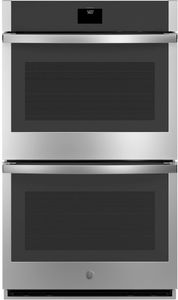 GE® 30" Stainless Steel Double Electric Wall Oven features No Preheat Air Fry, True European Convection, Anywhere control with remote notifications, Remote Monitored Temperature Probe, Self-Clean with optional Steam Clean, Never scrub, heavy-duty racks, Hidden backlit LCD control, 10-pass hidden bake element, and 8-pass broil element.Read More