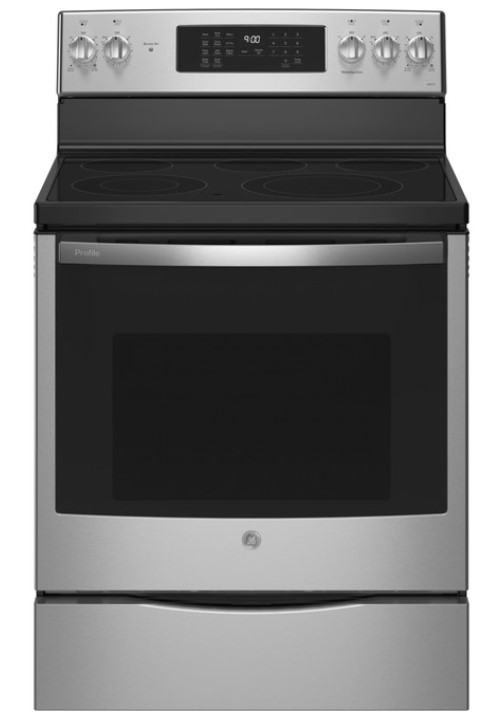 GE Profile™ 30" Fingerprint Resistant Stainless Freestanding Electric Range features No Preheat Air Fry, Built-in WiFi, Two Power Boil Elements, Two Dual Elements, True Convection, Fast Preheat, Fifth Element Warming Zone, and Self-Clean with Steam Clean.Read More
